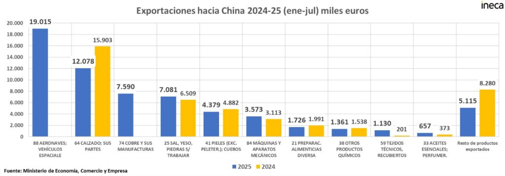 Entrando más al detalle, hay una variación negativa de 3,8 millones de euros de calzado, medio millón de euros en pieles, y 266.000 euros menos en la preparación de productos alimenticios respecto al año anterior.