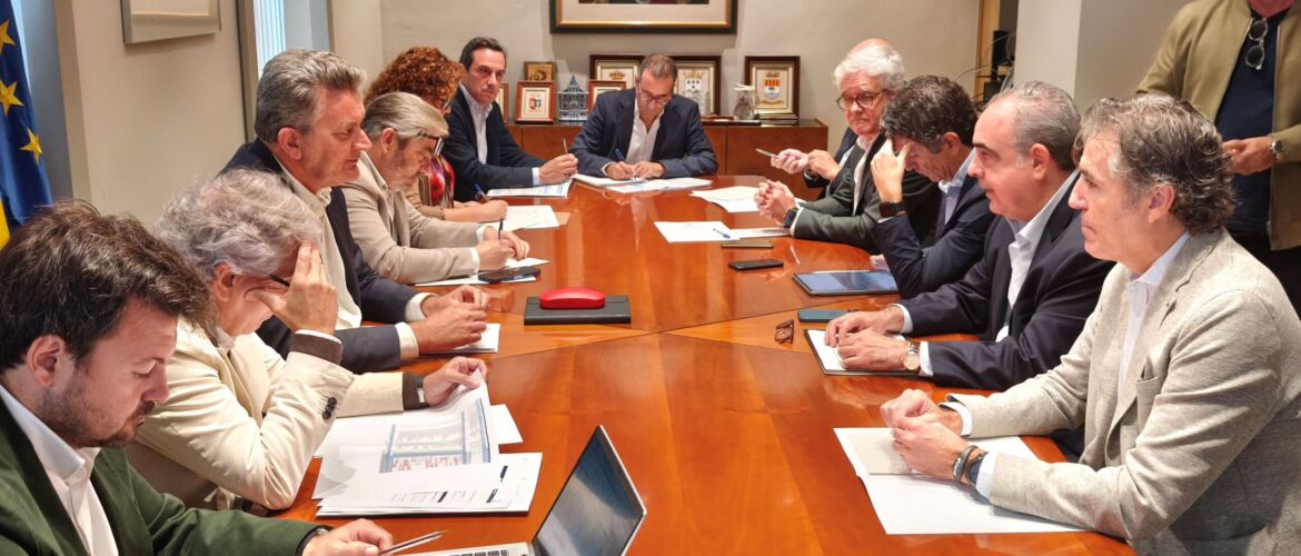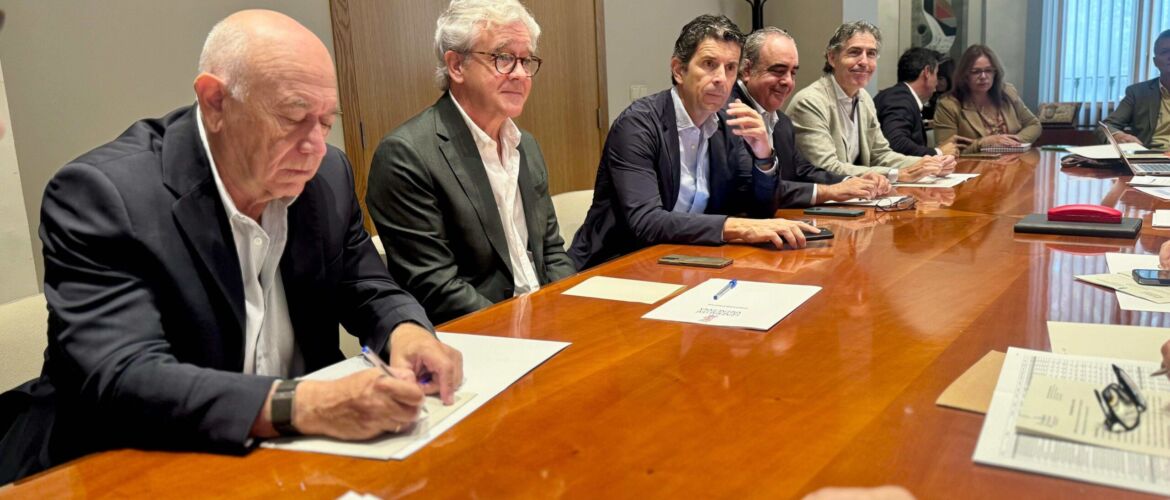 El presidente del Instituto de Estudios Económicos de la Provincia de Alicante (INECA), Nacho Amirola, el secretario general, Alfredo Millá, y el anterior presidente del Instituto, Rafa Ballester, entre otros representantes, han mantenido esta mañana un encuentro con el conseller de Medio Ambiente, Infraestructuras y Territorio, Vicente Martínez Mus, y los secretarios autonómicos Raúl Mérida y Javier Sendra, entre otros responsables de la Conselleria, fruto del compromiso de la Generalitat Valenciana en la que INECA va a monitorizar las inversiones ejecutadas en la provincia de Alicante.