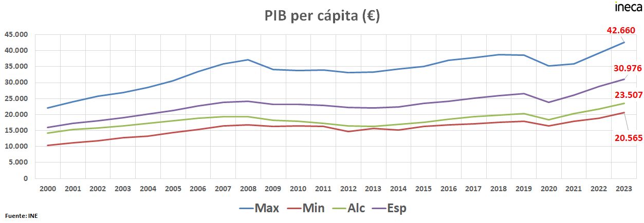 La provincia de Alicante en el año 2023 contabiliza un PIB per cápita de 23.507€, 1.797 euros más que un…